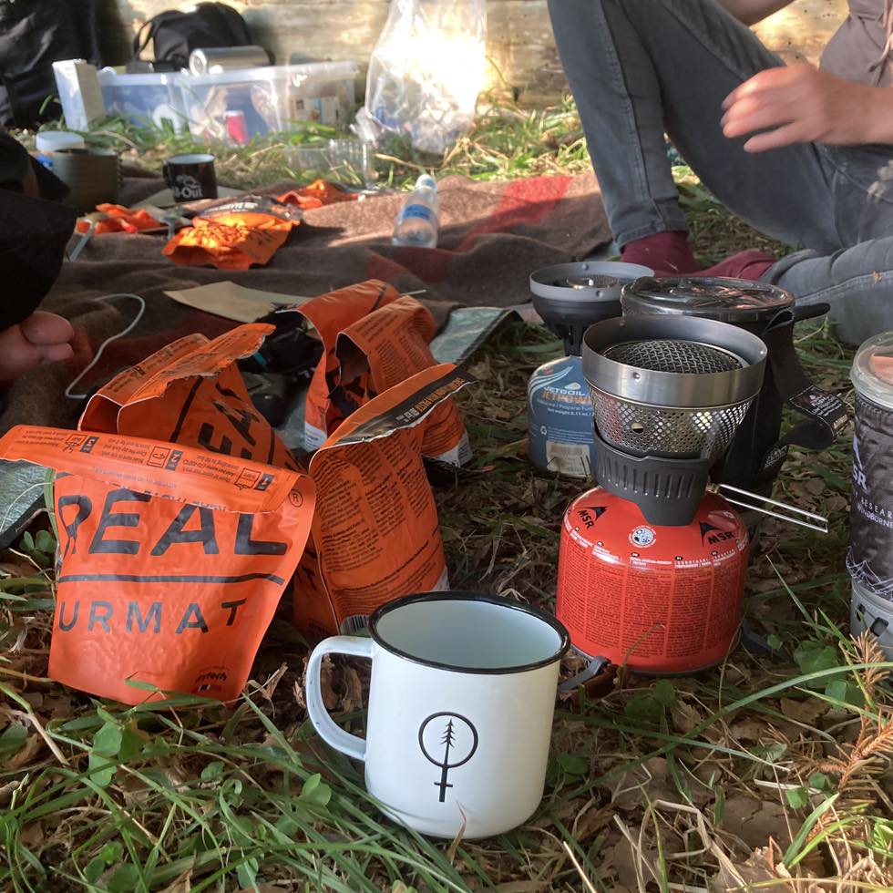 Når vi samles under åben himmel, er det med bevidste valg i rygsækken. Vi bruger genbrugte og lånte materialer, laver mad over bål med minimale ressourcer og undgår unødigt affald.